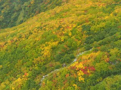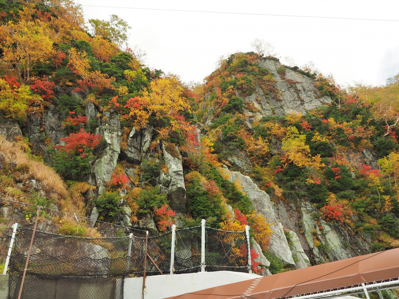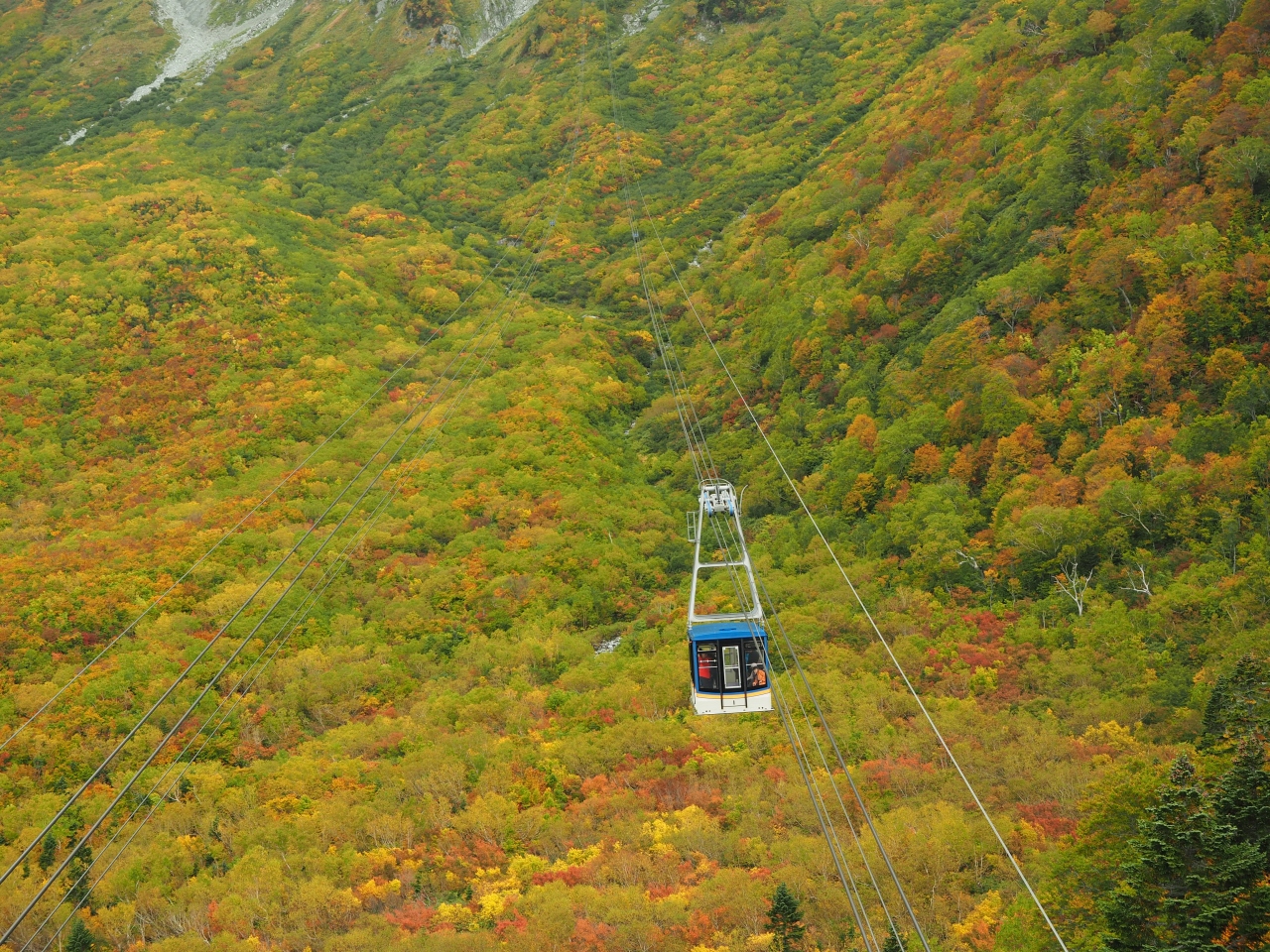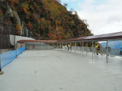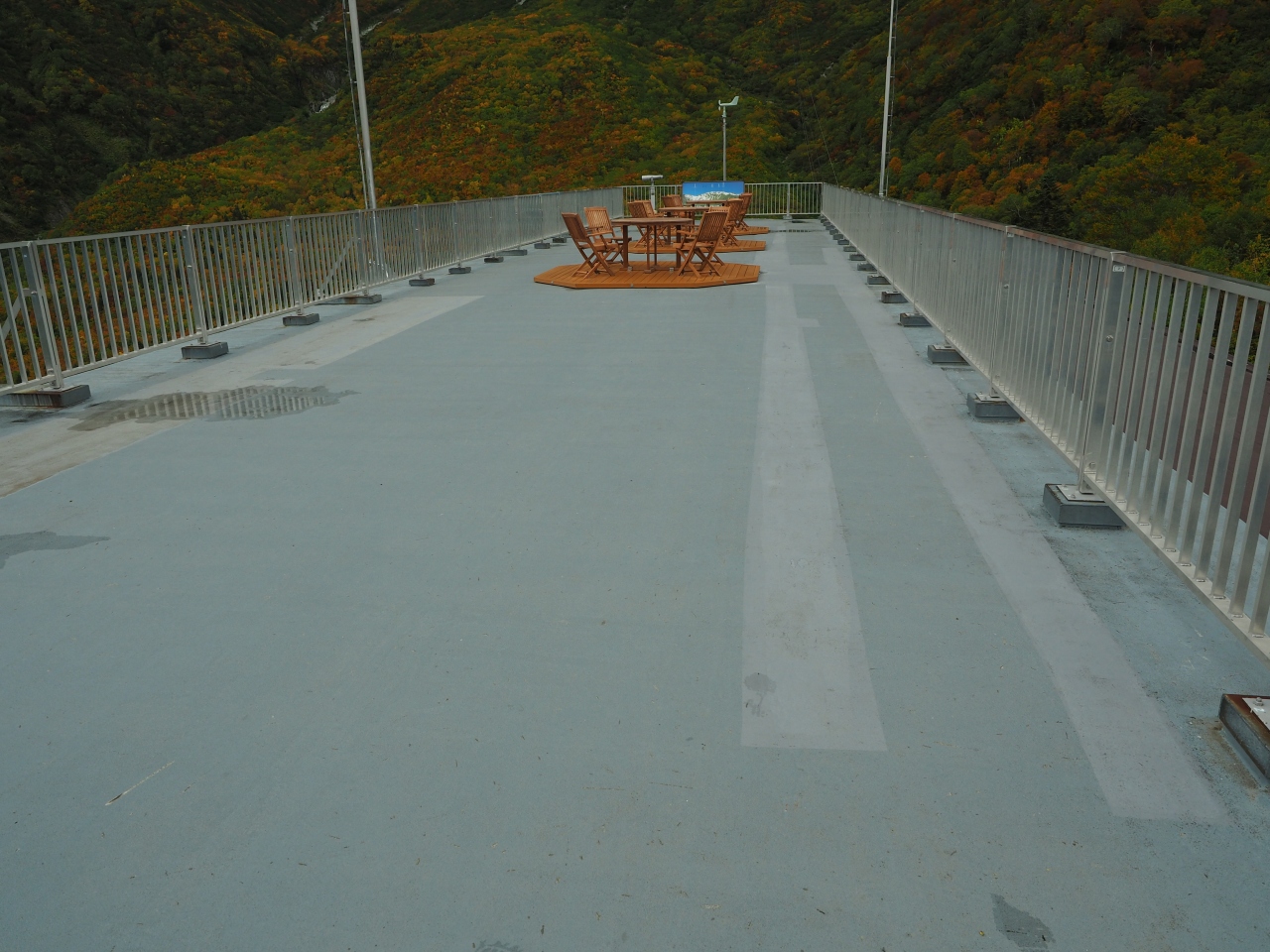 大観峰駅の屋上にある展望台です。荷物を持って階段を登るのは少し辛いですが、その眺めは抜群。後立山連峰、黒部湖が一望です。しかも2018年は少し紅葉が早く、9月末でタンボ平も色づき半ば、展望台の横から上部は見頃でした。晴れていれば素晴らしい景観が楽しめるので登る価値はあります。