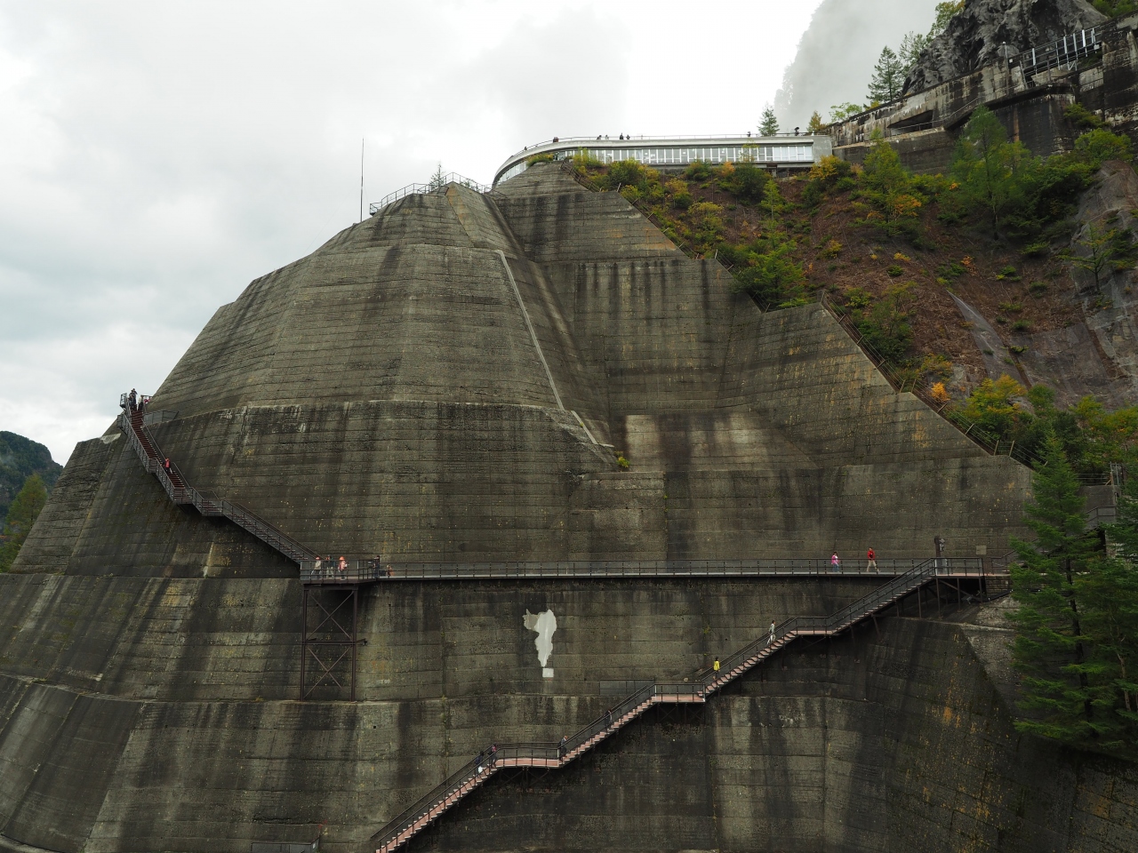黒部ダムと言えばこの観光放水なくして語れません。真上から覗き込むと少し怖さを覚えるくらいの凄まじい放水を目の当たりにできます。一番眺めがいいのは展望台。ただこちらには200段の階段を上がらなければならず少々きついです。ただ階段をほとんど登らない新展望広場やレインボーテラスもあり、こちらからでも十分迫力ある放水を見る事ができます。