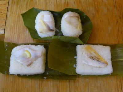 お店はとやマルシェ内の一角にあります。乗り換えの間に伺い購入したのは鱒のすしと一口サイズの鯖の柿の葉寿司、鯛寿司、のどぐろ寿司。弥陀ヶ原でいただきました。鱒のすしの鱒の身はしっとり。旨みもありご飯と見事に一体化していておいしいです。ますの寿司はもっと酢が効いていている印象でしたが、刺身ほど生ではありませんが、フレッシュ感がありました。鯖、鯛、のどぐろの寿司。鯖だけ2個入りで柿の葉の香りもほのかに移り、しっかり酢締めされた鯖が旨いです。鯛はレモンも乗せられさっぱり。のどぐろは少し炙られており、少し香ばしさも感じされました。この3つの中では鯖が好みでした。久しぶりの鱒のすし。思っていたよりおいしく感じました。スーパーの駅弁大会でも売っている源のものを富山に来てまで、と思われる方には寿々屋さんもお勧めです。