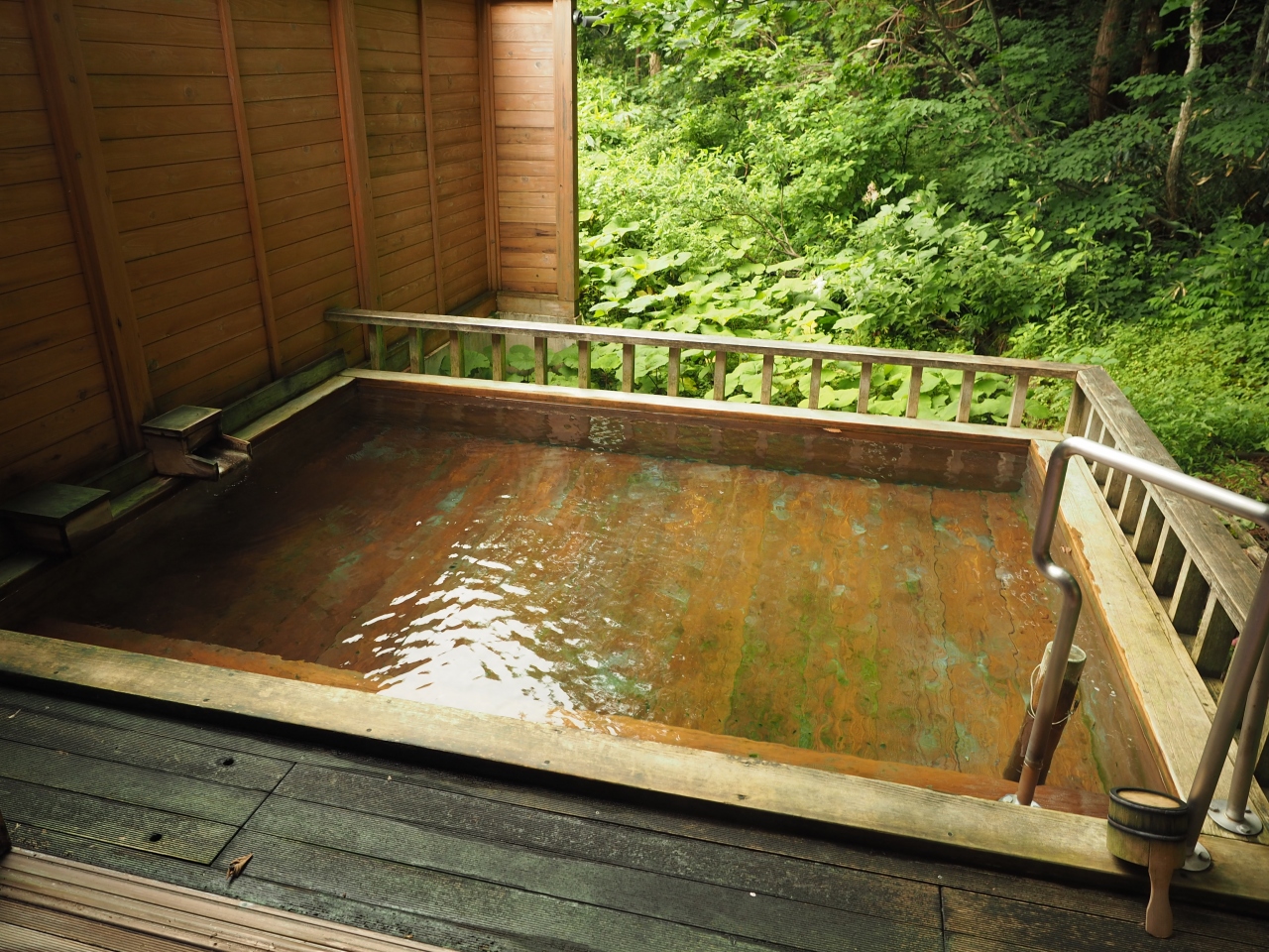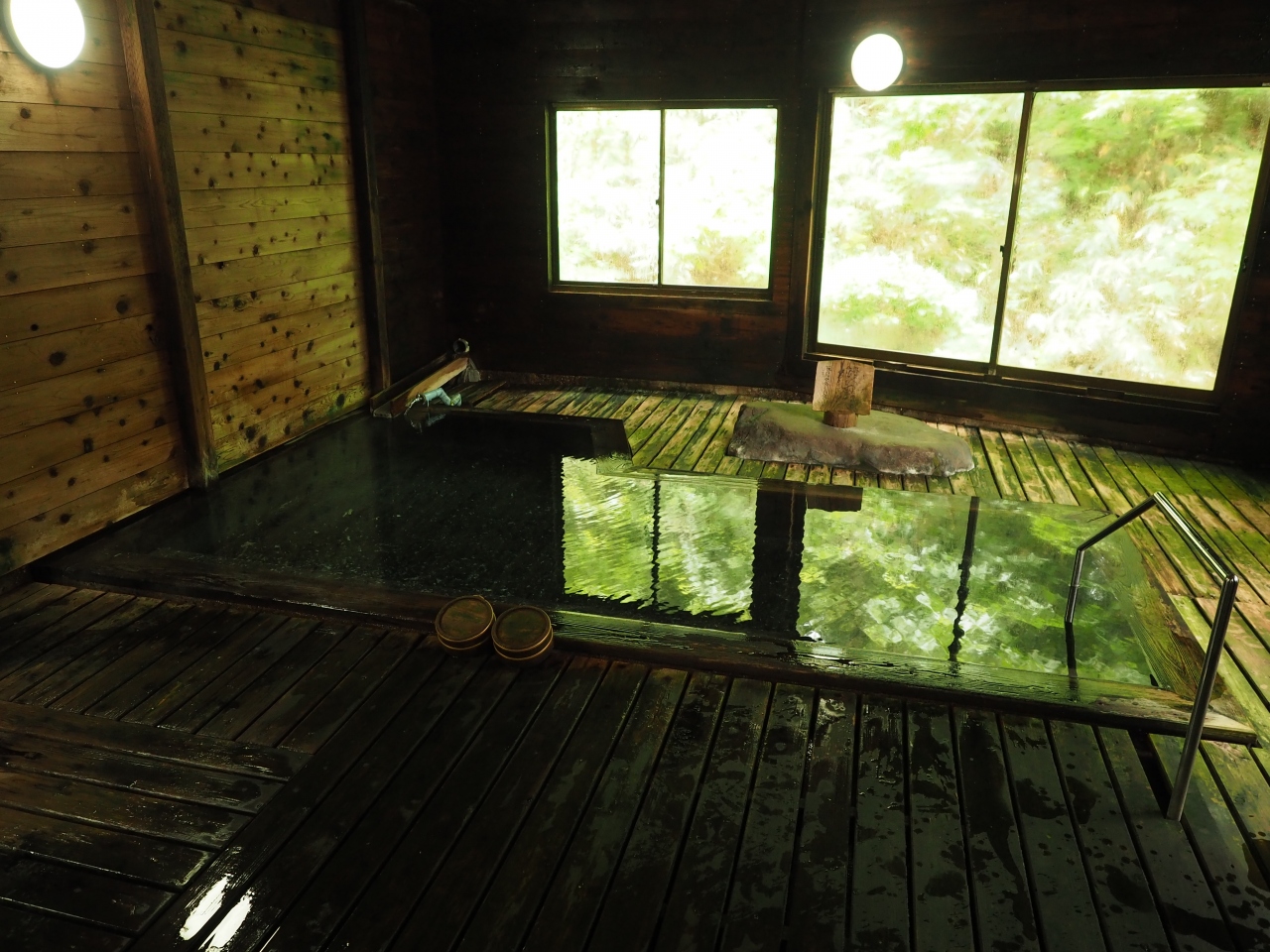 湯めぐり帖で日帰り入浴しました。浴室は男女別の内湯が2つ。女性専用の露天風呂(男性専用の時間帯もあり)が1つ。混浴露天風呂が1つです。それぞれ別源泉で、浴室の雰囲気も違った趣。内湯の木風呂は秋田杉が敷き詰められており、いい雰囲気です。消しゴムのカス状の湯の花が多く、単純硫化水素泉のお湯も肌あたりも優しくいいお湯です。そして50mほど森の中を歩いた先にある混浴露天風呂は開放感抜群。自然の中で温泉に入っているようで素晴らしかったです。その割には空いており、穴場かもしれません。