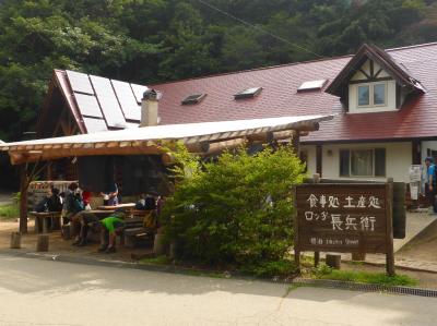 上日川峠の登山口そばにあるロッヂです。屋根付きのベンチがあり、朝はここをお借りして準備しました。帰りにはバスの時間まで休憩し、かき氷(いちごミルク)を注文。今はやりのフワフワなものではなく、氷をクラッシュしたタイプです。口の中がつめたくなり続けて食べられませんが、一息つけました。専門店のようなクオリティはありませんが、場所を考えれば十分でしょう。他にも冷えた桃などメニューも豊富で、待ち時間の休憩にはちょうどいいロッヂです。