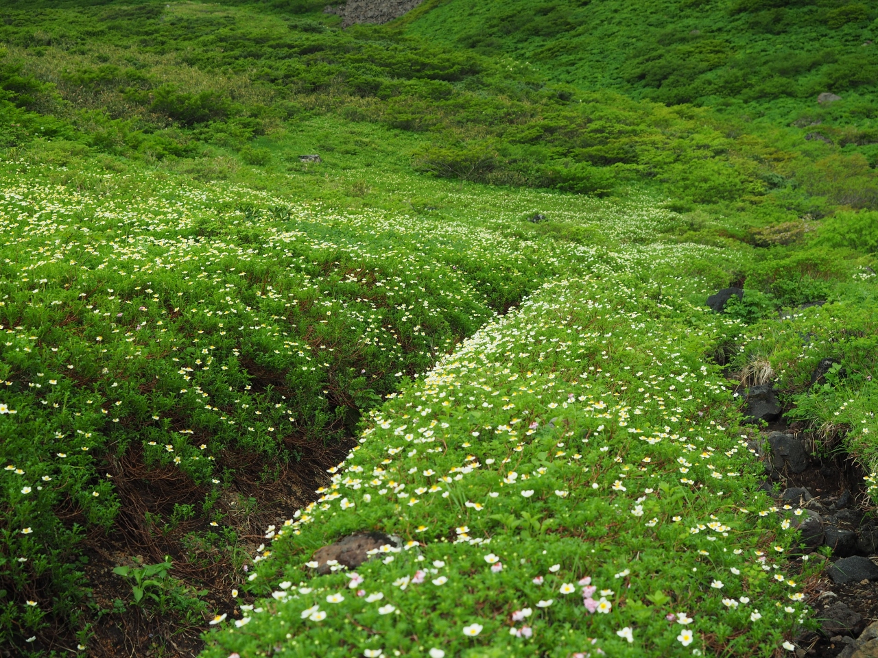 花の名山として名高い秋田駒ヶ岳。6月中旬からは次々と高山植物が咲き始めます。シャトルバスで8合目まで行く事ができ、そこから男女岳までは1時間30分、花を見ながらゆっくり登っても2時間で到着します。登山道沿いにはハクサンシャクナゲ、ミヤマキンバイなど群落になって咲いており、楽しみながら登れました。さらに一番の見どころは馬場の小路、通称ムーミン谷と呼ばれている辺りのチングルマの群落。一面に咲くその様が見事という他ありません。他にもコマクサやニッコウキスゲなどの群落もあり、毎年訪れたい山です。