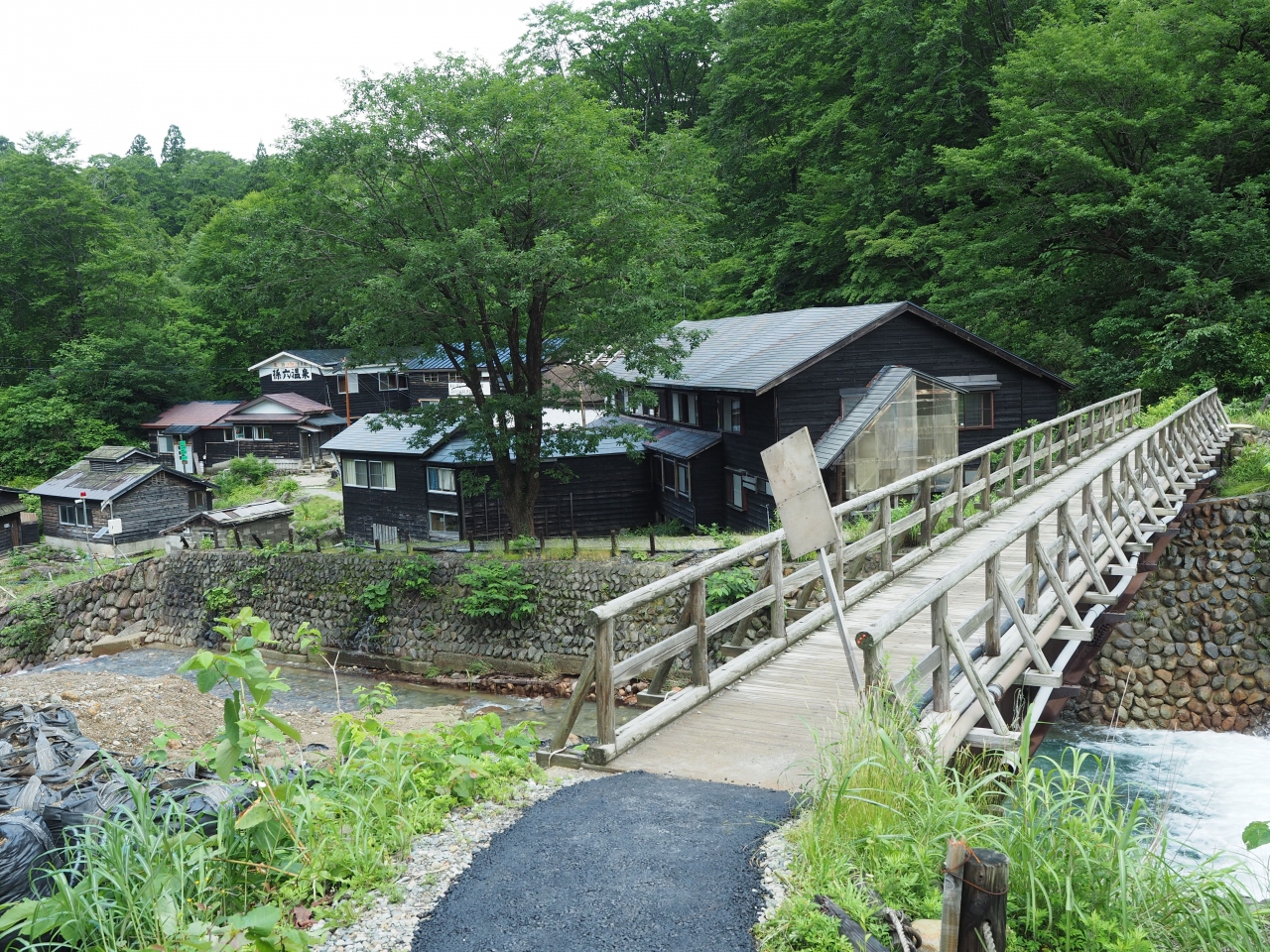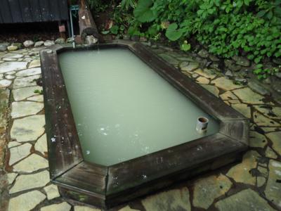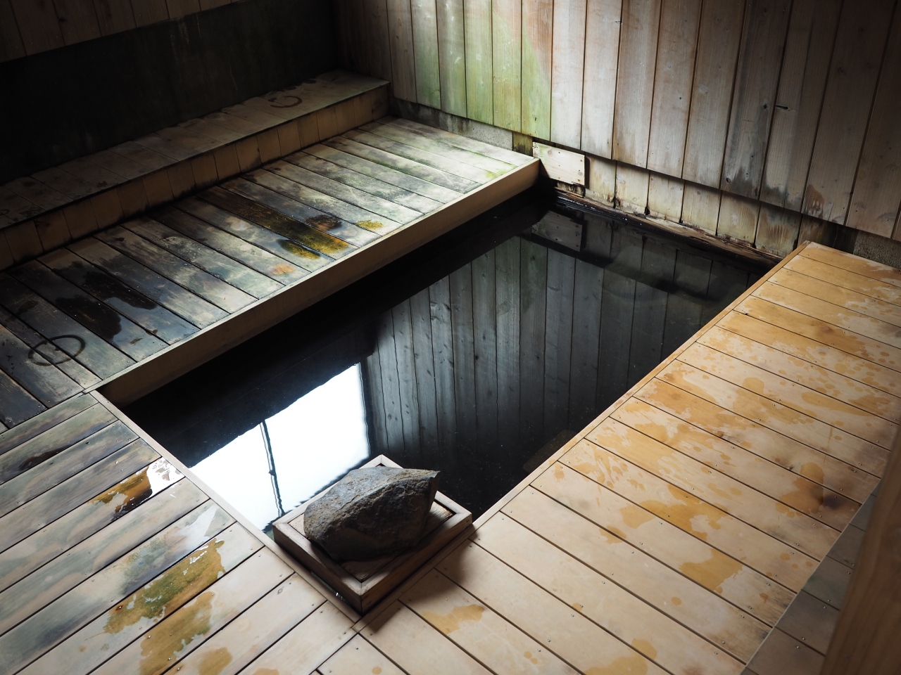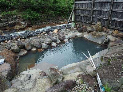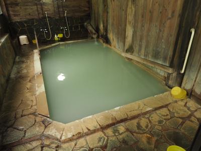 大釜温泉は一軒宿。廃校を利用した建物ですが、館内は非常にきれいです。浴室は男女別の内湯と露天がそれぞれあります。泉質は含鉄ー単純酸性泉。(宿のHPには酸性含ヒ素ナトリウム塩化物硫酸塩泉とあります。)内湯は少し熱め、露天は適温(加水あり)の浴槽と温めの浴槽があります。白濁したお湯はやめらかで、肌がツルツルになります。お湯は素晴らしかったので、立ち寄りでも是非!