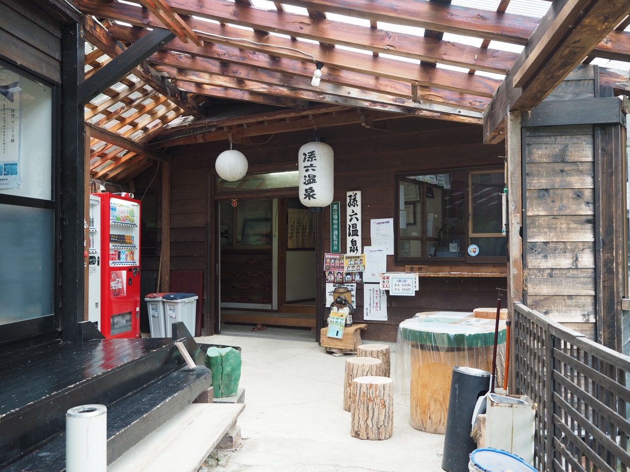 孫六温泉には男女別内湯の「唐子の湯」と混浴の「石湯」がそれぞれ1つ。「石湯」の奥に男女別の露天風呂があります。共に単純温泉ですが、別源泉。「唐子の湯」は少しとろみを感じるいいお湯でした。「石湯」の露天風呂は周りに何もない開放感が良く寛げました。