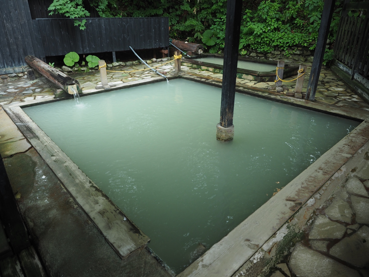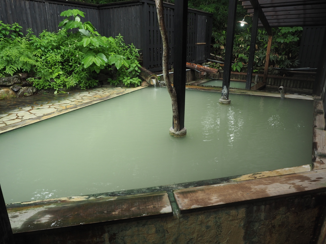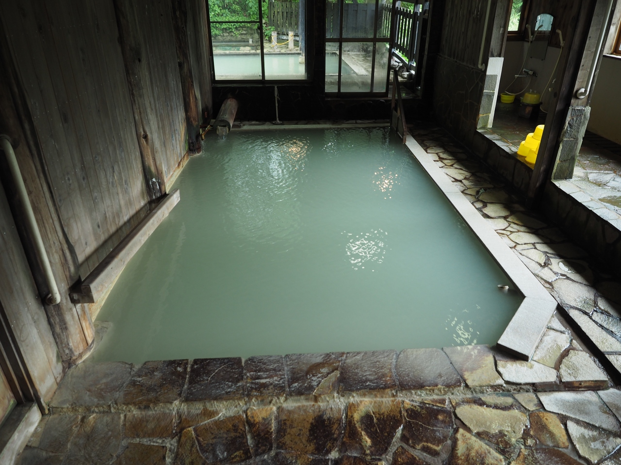 湯巡り帖での日帰り入浴での利用です。浴室は3階。男女別の内湯が2つに露天風呂が1つあります。脱衣所も鍵が掛かるタイプで安心。内湯には乳頭の湯と田沢湖の湯の2つの源泉の浴槽があり、乳頭の湯はナトリウムー炭酸水素塩泉。淡いモスグリーン色のお湯で、適温。田沢湖の湯は単純硫黄泉で白濁したお湯。少し熱め。ツルすべ感もありいいお湯です。これは露天風呂にも引かれており、こちらは適温。この露天風呂が素晴らしい。周りのブナの林を見ながらが気持ち良く入浴できました。カランやシャワーもスーパー銭湯仕様で整っており、一番安心感がありました。フロントの接客も丁寧で客室も多く、幅広い年齢に対応できる宿ではないでしょうか。