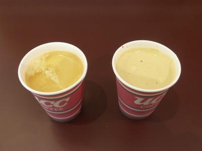 秋田空港の搭乗口そばにあります。早めに手荷物検査を終え搭乗まで時間もあるので、こちらで休憩。注文したのはブレンドコーヒーとカフェオレ。カウンター席でいただきます。味は特筆する事はありませんが、旅行の疲れやレンタカーの運転で緊張感から解放され一息つくには十分なものでした。横ではサラリーマンがうどんを掻き込みなど結構な人気ぶり。搭乗前の待ち時間にちょっと小腹を満たすにはいいお店です。