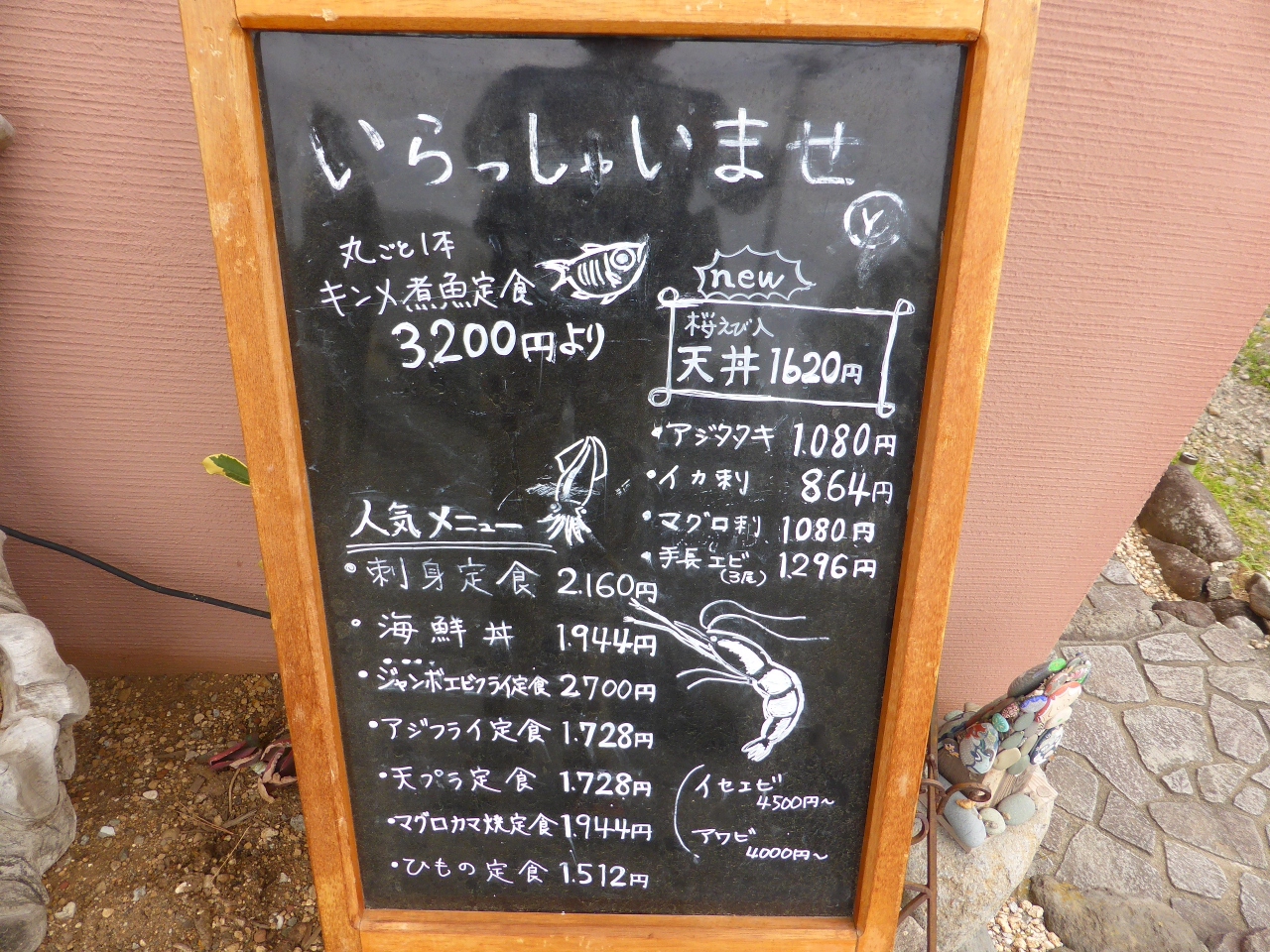 土肥温泉での昼食。歩いて行ける場所で選んだのは湯茶寮マルトの食事処「紅一点」。注文したのは海鮮丼と鯵フライ定食。海鮮丼は真ん中に手長海老が乗り、鯵、蛸、サーモン、鮪などなど。一切れが大きくボリュームがすごい。鯵フライも中はふわふわ、衣はサクっとしておいしいです。さすが魚問屋だけの事はあります。入口が建物の右横で分かり難く、週末でも空いていました。意外と穴場かもしれません。