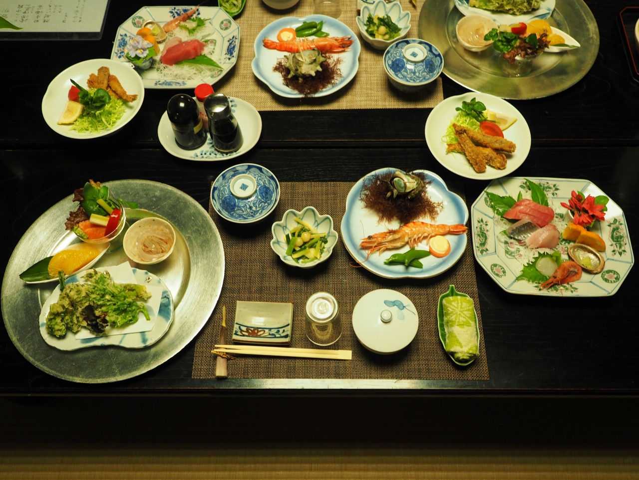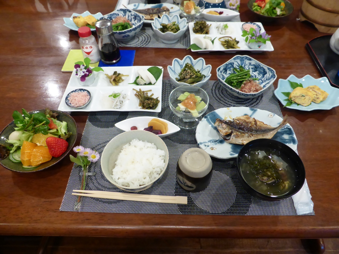 土肥温泉の海沿いではなく、少し離れた馬場地区にある民宿です。1日2組限定の宿で、ご夫婦で経営されています。部屋は和室10畳で広いのですが、風呂は一つしかなく貸切での利用。たださほど問題になるほどではありませんでした。そして夕食。海の幸、山の幸が食べきれないほど並びます。味付けも良く、おいしかったです。しかも非常にリーズナブル。また季節の折々に訪ねたい宿です。