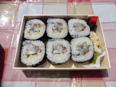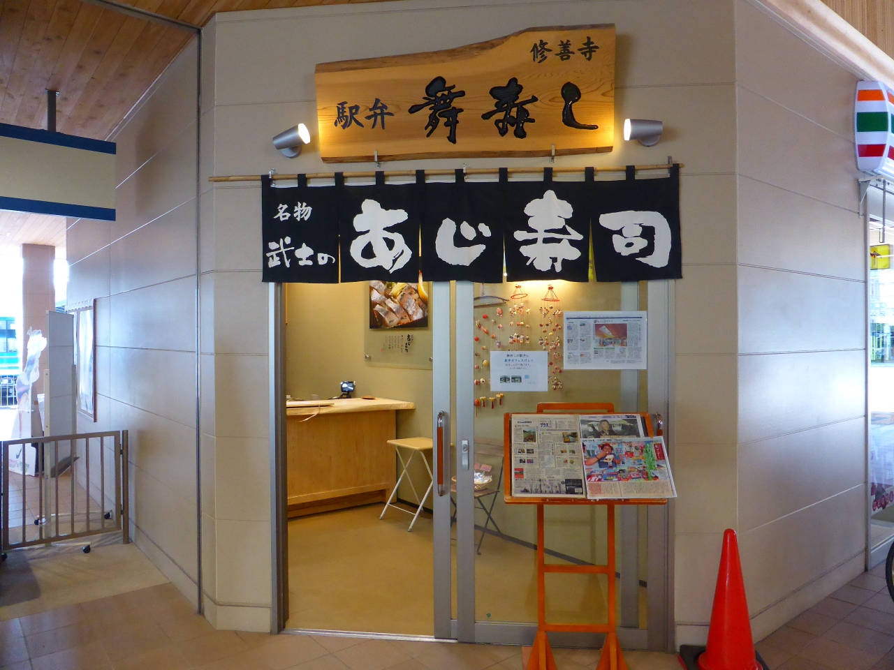 達磨山の山頂で食べようとあじ寿司、あじ巻寿司、わさびいなりを購入しました。わさびいなりには本山葵と山葵の茎漬けが酢飯に入っています。ほど良い辛味がいいアクセントになっています。あじ寿司には桜葉の塩漬けが敷かれており、食べ進むとふわっと香ります。巻寿司には大葉が入り相性がいい組み合わせ。どちらもおいしいです。駅弁だと少し塩と酢が効いていますが、こちらのものはほど良い酢の締め具合でフレッシュ感も残る味わいで数段おいしかったです。