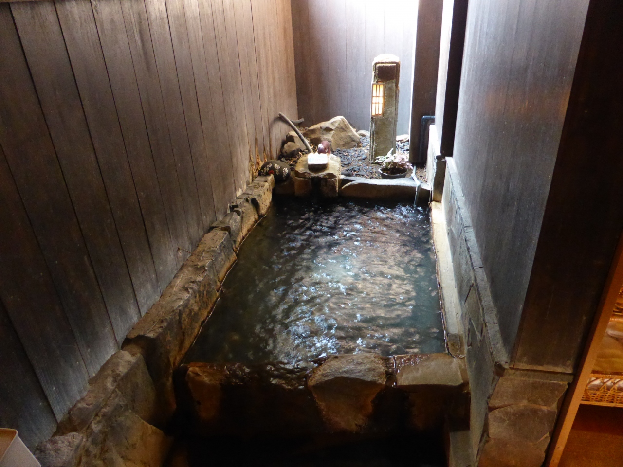 長崎にある秘湯を守る会の会員宿の一つです。秘湯を守る会のHPから予約、旬の会席プランで14000円+1120円(消費税)+150円(入湯税)で@15270円です。チェックインをしてすぐスタンプ帳に押印。その間に談話室でお茶菓子のべたもちのサービスです。部屋は2階の和室8畳+広縁付き。トイレ、洗面もあります。風呂は男女別の内湯が1つずつと無料の貸切風呂が3つあります。ナトリウム・塩化物泉、所謂食塩泉の湯が全ての浴槽で源泉かけ流し。部屋数10で貸切風呂が3つもあるのでゆっくり入る事ができました。夕食は1階の個室でいただきます。造り、豚角煮、もみじ豚のしゃぶしゃぶ、鰤の煮付け、長崎牛のステーキなど。どれも比較的薄味のものが多く、しかし出汁が効いており繊細な味付けです。自分達の口には合いました。あえて言えば普段家で食べる鰤ではなく、別の旬の魚の方がよかったなぁと思いました。ただ従業員の方の接客も良く、好感が持てました。貸切風呂も多い事から、2人でゆっくりするのにいい宿だと思います。