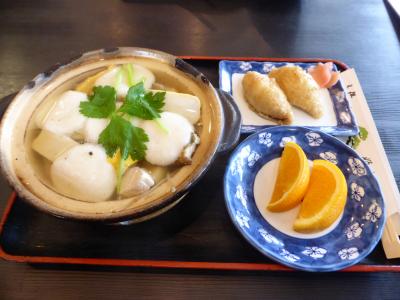 島原観光の際のランチで訪問。昼食はやはり名物の具雑煮を頂こうという事になり、こちらにしました。外で並んでいる人もいましたが、意外と回転も早くすぐ入店できました。店内はかなり広いです。色々セットになったものもありますが、宿の夕食の事もあるので稲荷寿司がセットになった梅を注文。丸餅に鶏肉、アナゴ、白菜、牛蒡、椎茸、卵焼き、蒲鉾など。文字通り具沢山です。餅は柔らかく、野菜は細切りでシャキシャキ感もあり、餅との食感の変化も楽しめます。そしてなにより汁が旨い。上品な出汁が引かれており、野菜は一度下茹でされているのか濁りや雑味もありません。家で作るただの具沢山の雑煮とは一味違いますね。さすが人気店だけの事はあります。