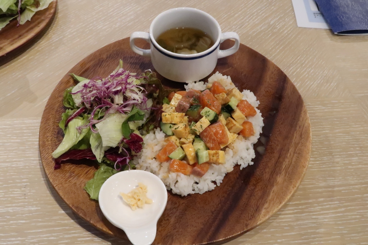 ●ギンヒカリと特製ゴマダレの彩り丼 特製ゴマダレという割りには胡麻感が薄い気がしますが、その分あっさり頂けます。きゅうりや卵の食感も楽しい。