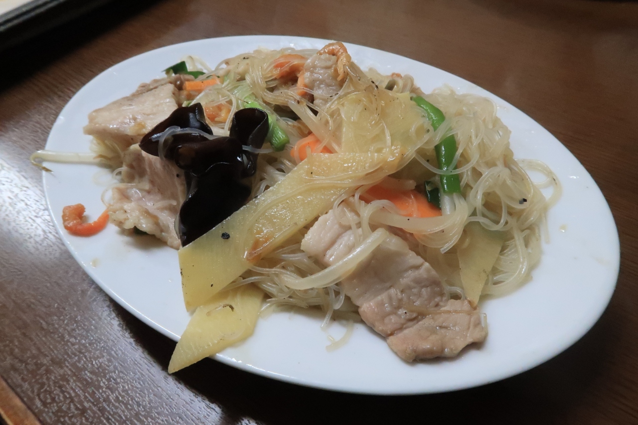 ●ビーフン 前回美味しかった記憶があるので注文。たっぷり入った干し海老と豚肉の旨味をビーフンが吸い、文句なく旨い。野菜は筍、木耳、人参などで食感が生きています。