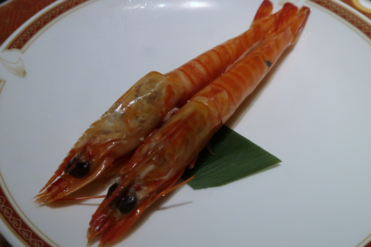 ●車海老の香り塩水漬け 火入れの温度も絶妙でしっとりとした身はジューシー。程よい塩味が味を引き立てます。