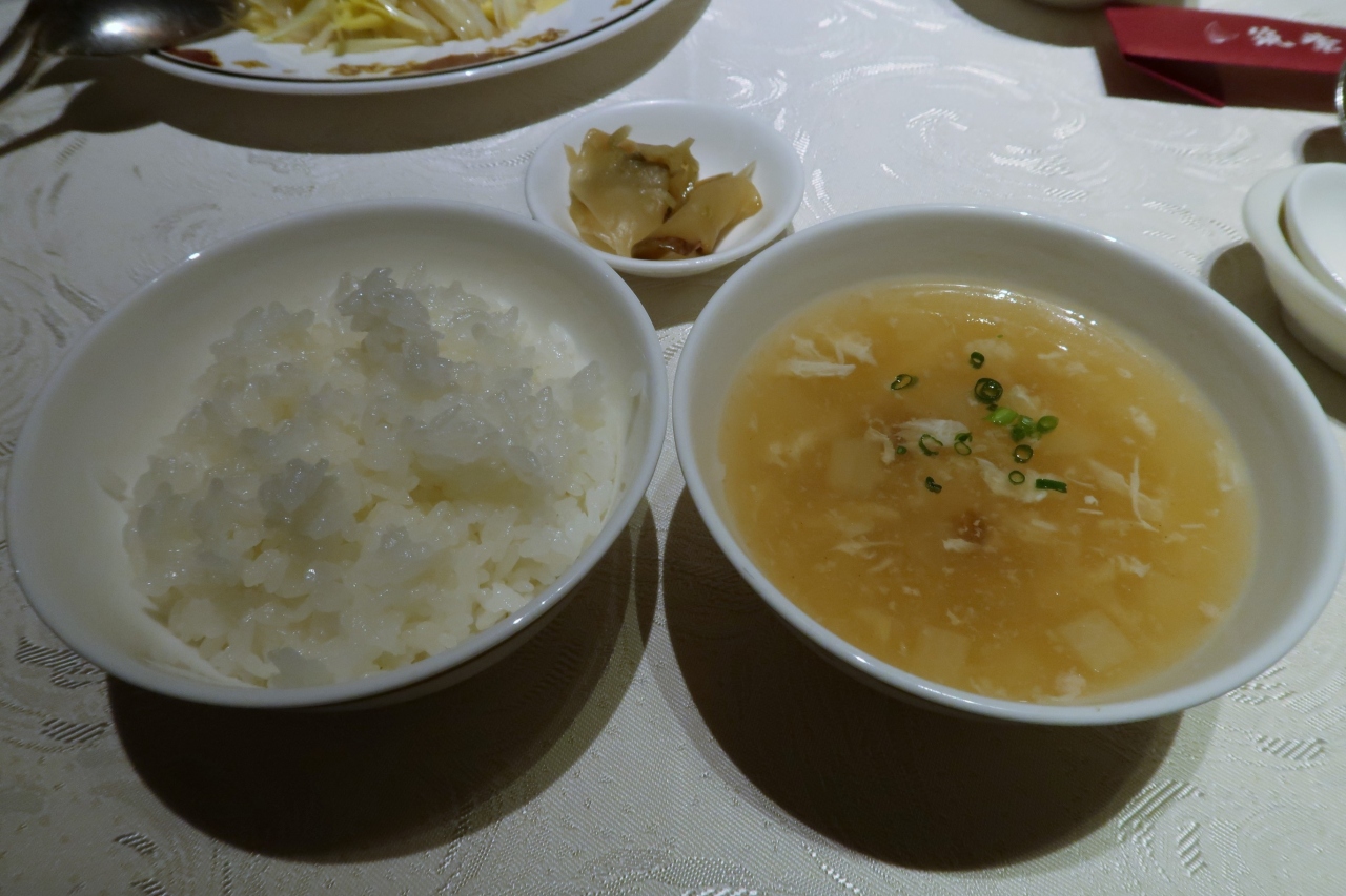 ●筑紫楼特製ふかひれの姿煮込み 流石にコースのフカヒレなので薄いものですが、独特の歯ごたえが楽しめます。ソースは塩味も程よくコクと深みのある味わいで、これをご飯にかけて食べると即席のフカヒレご飯。余す事なく味わえました。