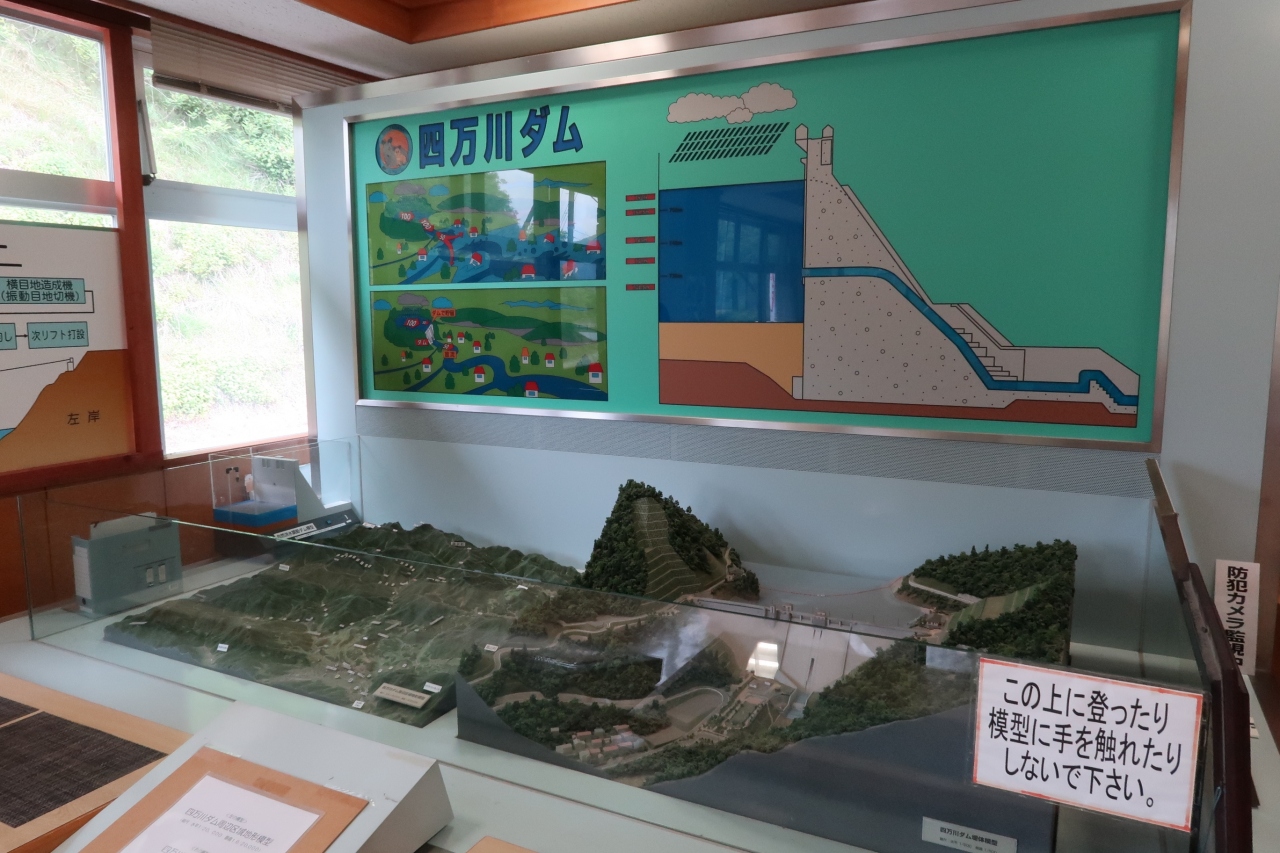 四万川ダムの袂にある小さな資料館です。無料で見学できます。館内には四万川ダムのジオラマやダムの構造等の説明、また大仁田ダムで使われていたものですが、操作盤が展示されています。ただ展示内容としては物足りなく、奥四万湖を見たついでで覗く程度で十分かと思います。