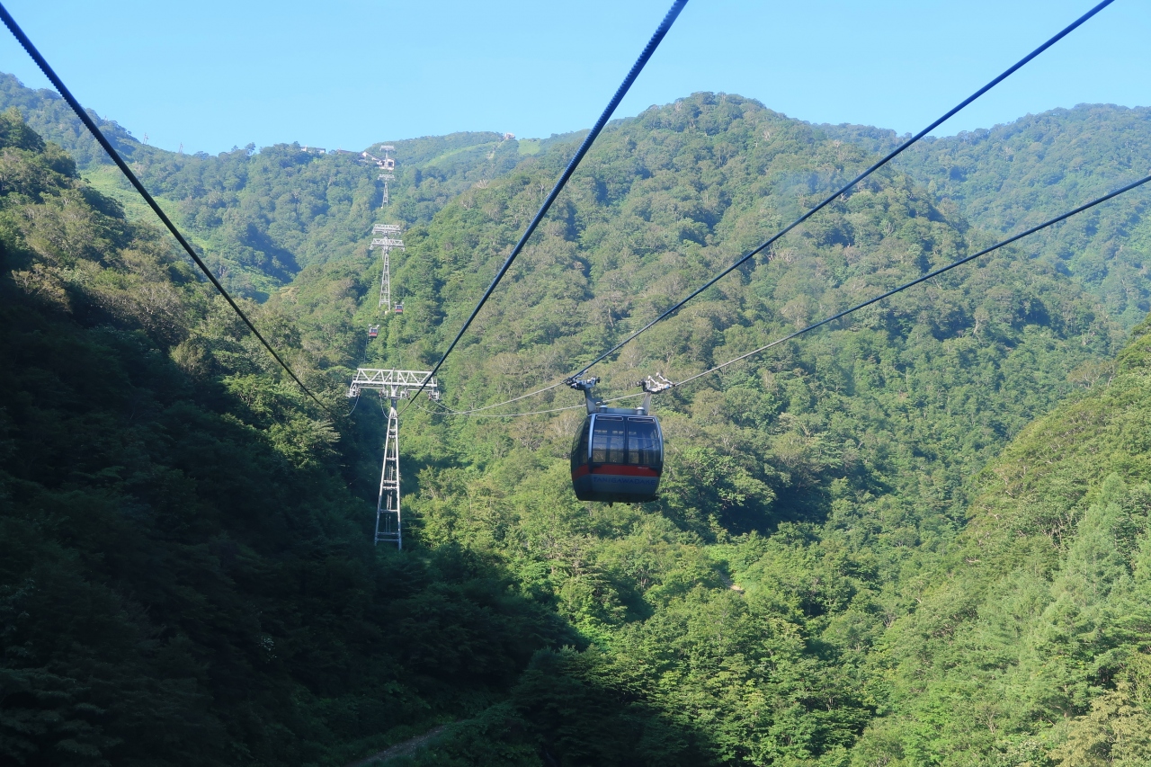 谷川岳ベースプラザにある土合口駅から天神平駅までを結ぶロープウェイ。以前より大人数乗車できるゴンドラになり運行時間も約7分と早くなりました。ただ2021年7月現在定員22名のところ8人で運行しており、行列ができていると若干時間が掛かるかもしれません。当日は週末という事もあり運転開始前より並んだためさほど待たずに乗車。揺れも少なく車窓からの眺めも抜群で登山や観光には欠かせないロープウェイです。