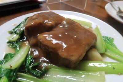 ●豚角煮(ハーフ) ハーフだと大きな塊肉が2切れ。箸でもスッと切れ、骨(?)や軟骨まで頂けるやわらかさ。肉の旨味にトロリとした餡も良く絡み美味しい。醤油ベースですが角煮や東坡肉とも違う独特の味わい。