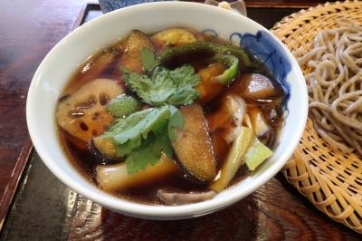 ●なす汁せいろ(田舎に変更) なす汁は具沢山で、ピーマン、蓮根、長葱など。出汁がしっかり効いていて汁にコクがあり、柚子の香りと酸味が味を引き締めます。これが非常美味しくて飲みたくなるほど。田舎蕎麦は外一。せいろより蕎麦の香り、風味を強く感じます。コシ、のどごしもよくこちらの方が好みでした。