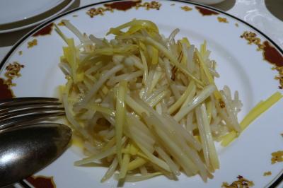 ●黄ニラともやしの炒め(別注) 当然ですが根切りされたもやしは舌触りも良くシャキシャキ。黄ニラの穏やかな香りとほどよい塩味が味を纏め、何でもないような炒め物だからこそ分かるレベルの高さを感じます。