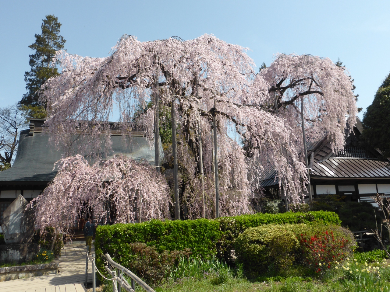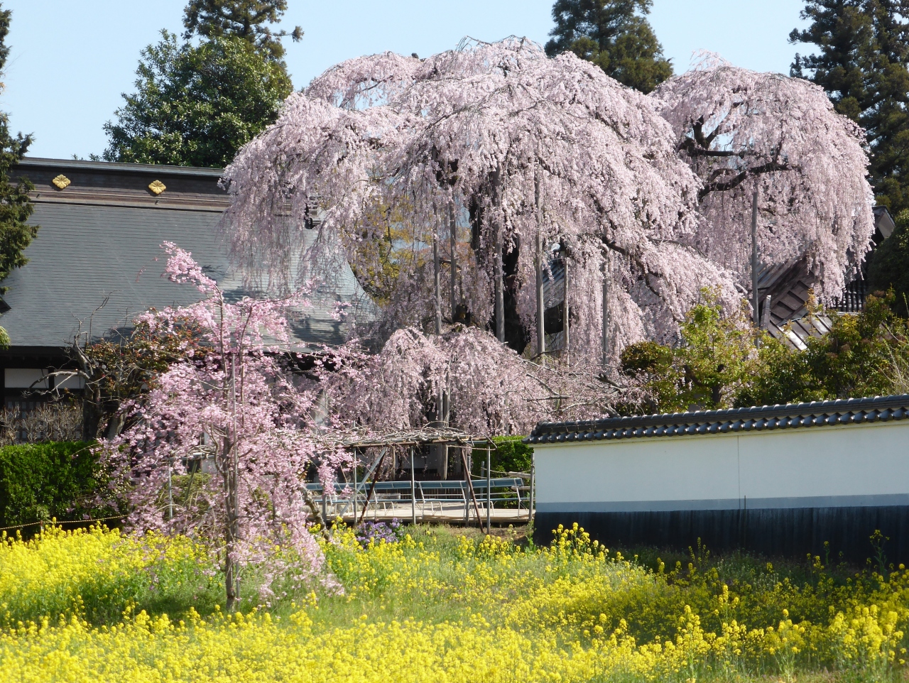 塩山市にある臨済宗のお寺です。樹齢が300年を超えるイトザクラが有名で、これを見るために訪れました。イトザクラ山梨県指定の天然記念物で枝振りも大きく見ごたえがあります。又、慈雲寺の前には菜の花畑で、菜の花ごしのイトザクラも風情がありきれいでした。普段は駐車場は無料ですが、サクラの時期は有料になります。イトザクラの開花情報は南フルーツ農園のページで日々更新されているので、訪問をお考えの方は参考にして下さい。
