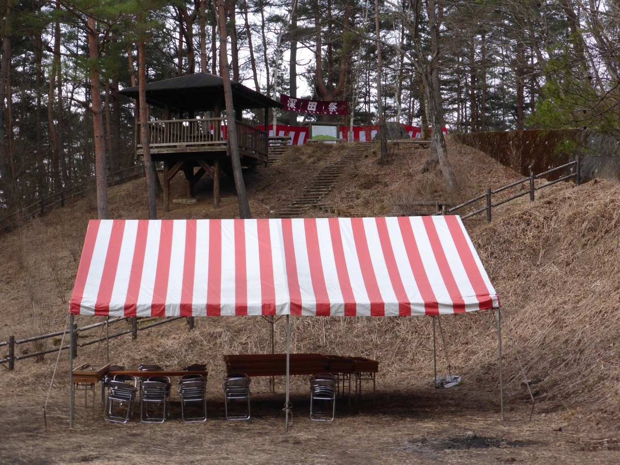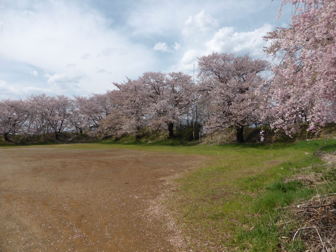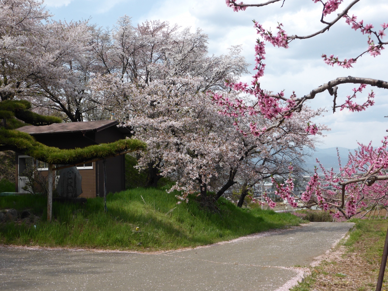駐車場は狭く、5台ほど。城址の中は広く、野球のグランドのよう。その周りの桜が満開できれいでした。しかしお花見をしているのは数組のみ。地元の方はこの時期になると桃の花も咲くので、そちらで花見をするのでしょうか。城址の周りは桃畑なので、桜と桃の花を同時で楽しめました。- 旅行時期