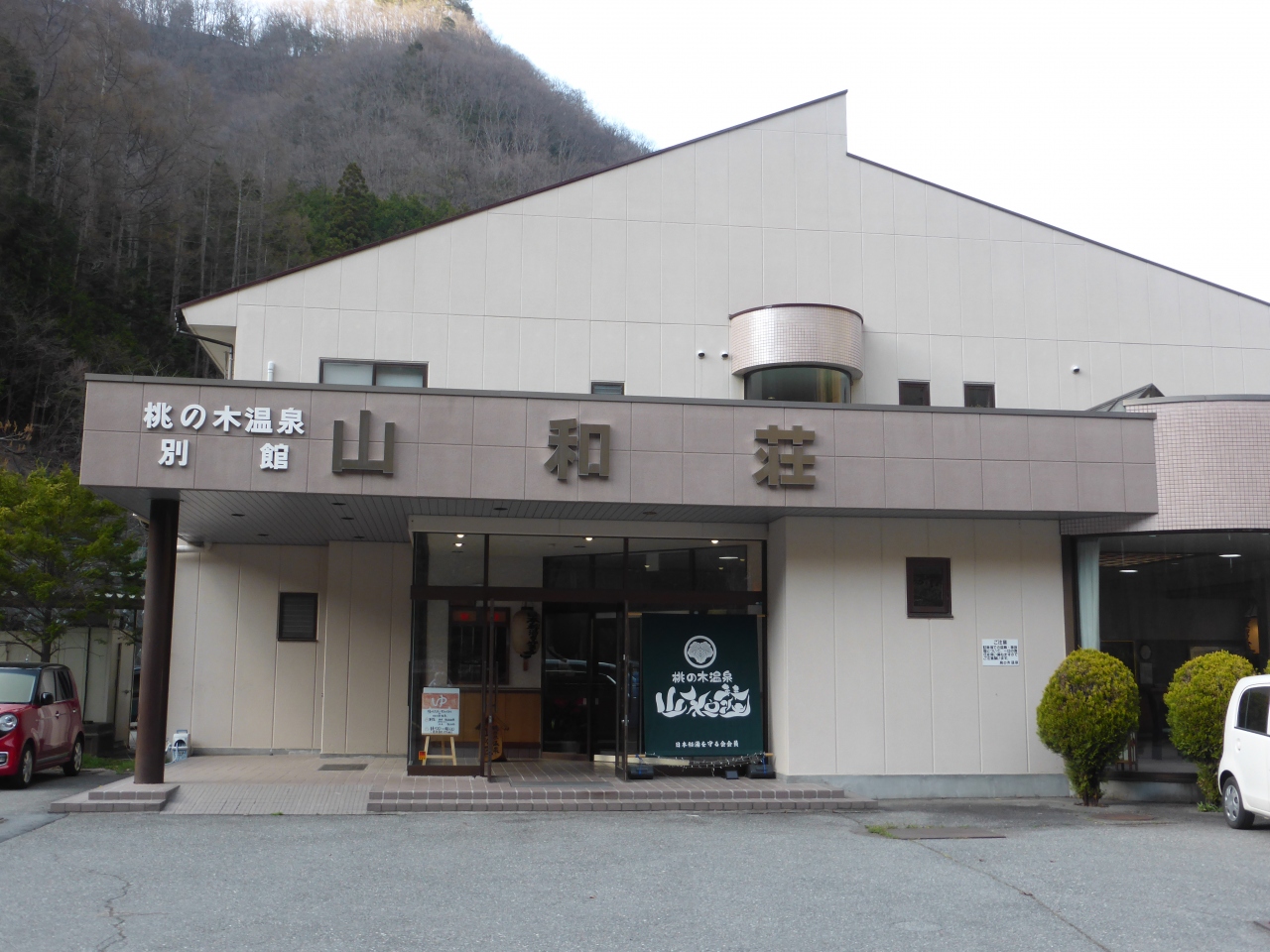 笛吹市の桃源郷を周った後に宿泊しました。笛吹市内から約1時間で到着。10室の宿にしては立派な建物です。ロビーも広々。部屋は2階の和室10畳+広縁付き、トイレ、洗面もあります。大浴場は1階奥にあり、男女別内湯と露天がそれぞれあります。適温のアルカリ性単純温泉の湯が源泉かけ流しで24時間入浴可。肌あたりがやさしく、しばらく入っているとツルスベ感を感じるいいお湯です。