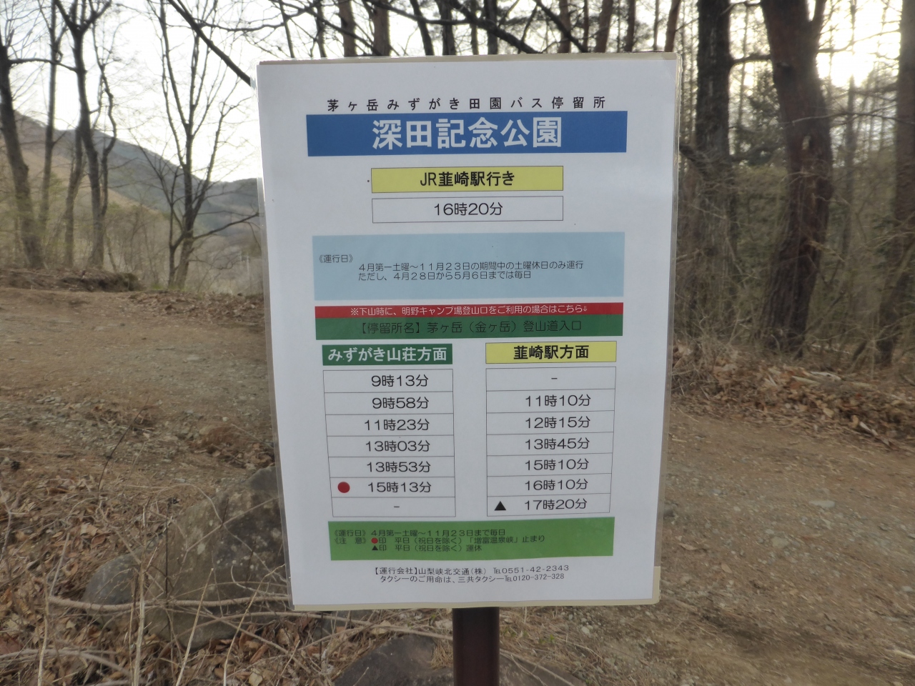 茅ヶ岳の登山口にある公園です。「日本百名山」の著者、深田久弥氏が茅ヶ岳登山中に急逝。逝去後10年を経た昭和56年4月21日に、韮崎市観光協会と地元の山岳会白鳳会の協力を得て開設されました。公園内には自筆の「百に頂に百の喜びあり」の言葉が刻まれた記念碑もあり、深田氏の重みのある言葉が胸に刺さります。韮崎市内からは車で30分弱、駐車場は20台ほど停める事ができ、トイレも完備。バスも運行されていますが、本数が少ないので要注意です。深田ファンならずとも山好きであれば、一度は茅ヶ岳とこの深田記念公園を訪れてみてはいかがでしょう。(深田祭は4月の第三日曜日に碑前祭と記念登山を行なっています。)