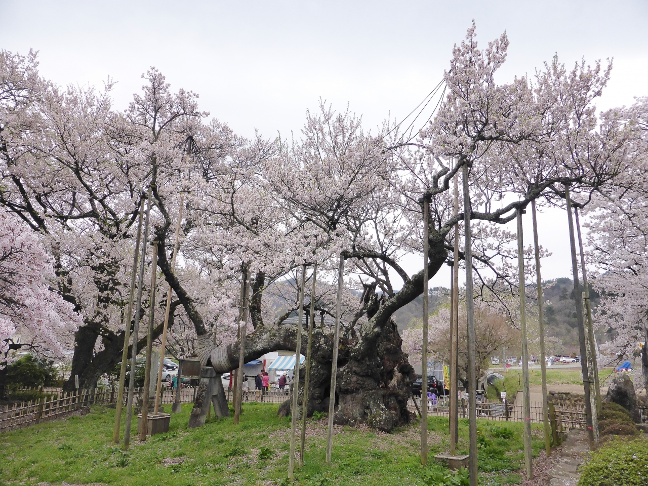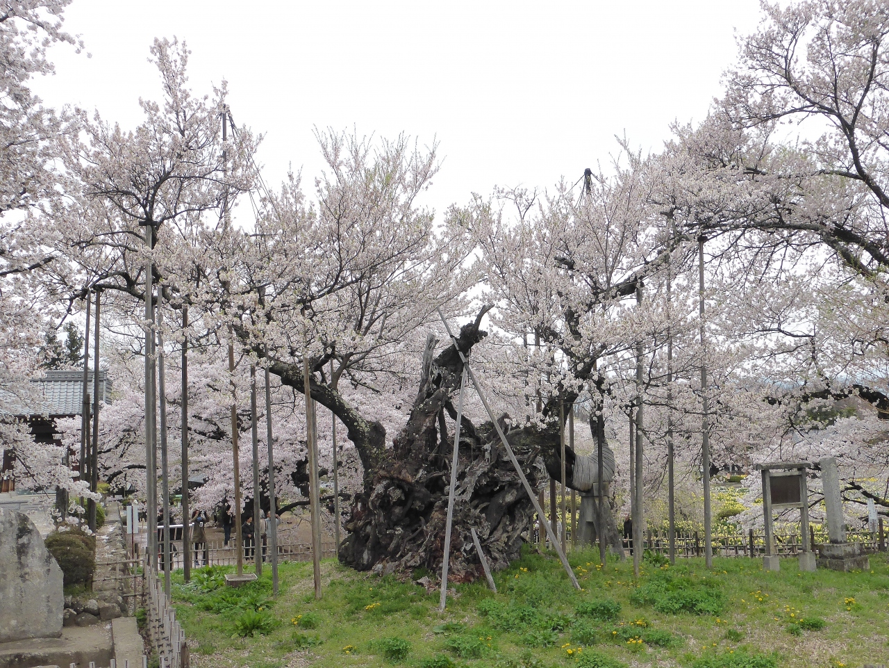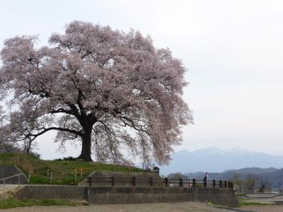 韮崎市にある桜の名所です。日本武尊の王子の武田王が埋葬された場所なので「王仁塚」と呼ぶようになったそうです。駅や市街地からも近く、駐車場も整備されていますが、少し歩くことになります。推定樹齢300年のエドヒガンザクラは幹や枝ぶりも大きく見ごたえがありました。そして何と言っても八ヶ岳や富士山をバックに写真を撮れるのが魅力で、絵になります。(ただ富士山と一緒に撮影しようとすると鉄塔が邪魔になり、うまくポジションを探さなければいけません。)