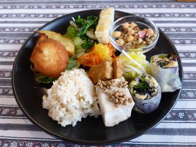 ベジプレートはサニーレタスの生春巻き、豆腐、大根浅漬け、テンペ、人参ラペ、ひよこ豆のサラダ、菜の花の和え物、おからの唐揚げ風、ポテトフライ、フォカッチャ、雑穀ご飯です。生春巻きは胡麻ペーストがベースのたれがおいしく、ひよこ豆のサラダはホクホクした食感とドレッシングが合います。その他、工夫されていて野菜だけなのに飽きさせません。付いてくるスープも多くの野菜が使われ、やさしい味わいでおいしいです。レンズ豆と野菜のカレーは野菜ときのこが数種入ったもの。きのこで食感とボリュームが出て食べ応えがあります。スパイス使いも適度で、野菜のおいしさを味わえます。これに食後の飲み物も付いて1000円とは驚きです。カウンター席やテラス席からは南アルプスの鳳凰三山と甲斐駒ケ岳が目の前に見え、素晴らしいロケーション。リフレッシュできます。- 旅行時期