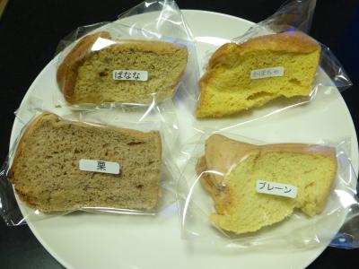 帰ってからいただきました。プレーンは甘さ控えめでやさしい味わい。バナナは程よい甘さとこくがあり、南瓜もほんのり風味がありおいしかったです。栗はこくは感じるのですが、栗の味とまでは分かりませんでした。ただ所謂ケーキ屋で売っているものと比べると、味わいとしてはシンプルで、膨らみ、ふんわり感、きめの細かさなど劣る点はあります。ただ値段から考えても、普段使いのお菓子としては十分なおいしさだったと思います。(シフォンケーキの形が歪なのは鞄に入れ持って帰ってきたからです。念のため)- 旅行時期