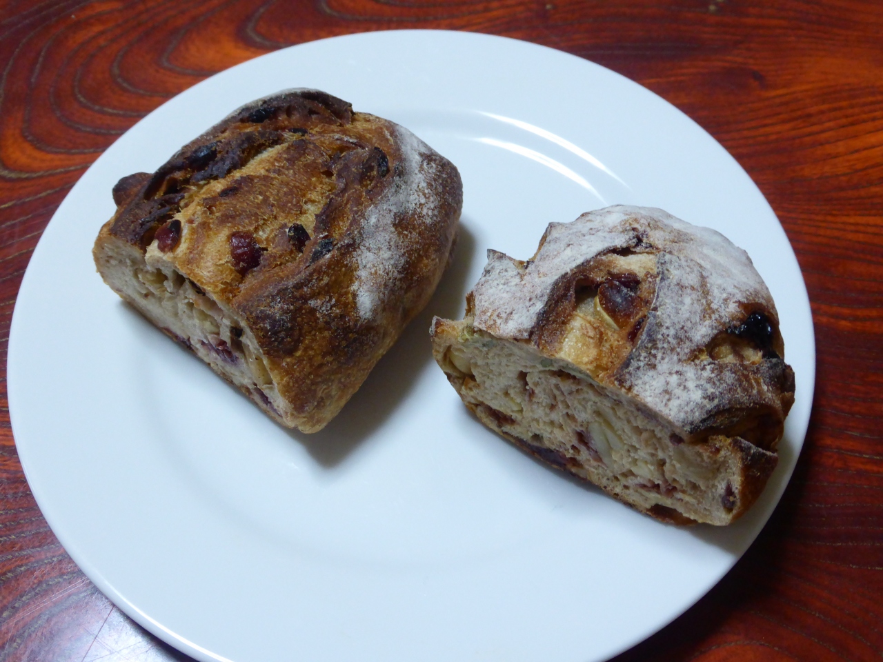 クランベリー・ヘーゼルナッツとチェリー・カシューナッツはそれぞれ違う甘みと酸味で、ナッツの香ばしさと食感が良くいいバランスです。生地にたっぷり練り込まれているので、ちょっと贅沢な味わいです。