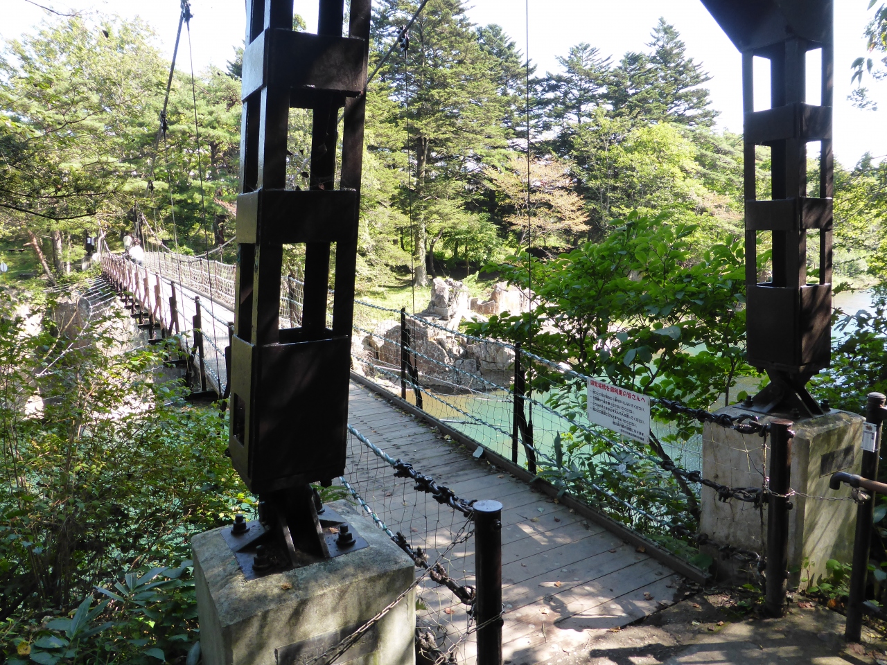 一ノ関にある渓谷です。石英安山岩質の岩石が滝や川の流れで浸食されてできた峡谷で、変化の多い美しい景観が魅力です。橋の上からだけではなく、渓谷の中に東屋があり間近で見る事ができます。30分ほどの散策コースは、気持ち良く歩く事ができました。ただ最近は「空飛ぶ団子」の方が有名で、美しい渓谷を見ずに団子だけを食べて帰るという観光客が多いのがちょっと切ないですね。訪れた時はまだ紅葉には早かったですが、見頃の時期にも来てみたいです。