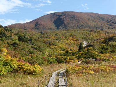 須川高原温泉に宿泊すると栗駒山荘の入浴券をいただけるので有難く入りに行きました。現在風呂の撮影は禁止されているので、写真はありませんが、紅葉し始めた須川高原の絶景を見ながらの入浴。ゆっくり浸かって疲れを癒しました。入浴後はレストランくりこまで昼食。まだ12時前だったので、運良く窓際の席が空いていました。注文したのは秋限定の錦秋膳と深山きのこ汁膳。