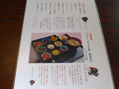 栗駒山登山旅行の最終日のランチで訪問しました。交番の前にある観光案内所で場所を確認して向かいました。歩いて6~7分。案内所で言われた通り、コンクリート打ちっぱなしのモダンな建物です。まだ12時丁度ぐらいで客は自分達のみでした。注文したのはひと口もち御膳です。