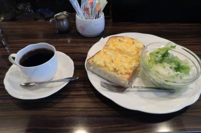 モーニングで訪問。チェーンのカフェがひしめきあう中、以前から一度伺いたかったこちらへ。松坂屋上野店から中央通りを南へ。みずほ銀行手前の角を曲がったところにあります。10時着で先客4組。カウンター席に案内されました。入った時から昔ながらの雰囲気が心地よく落ち着けます。注文したのはモーニングセットのタマゴトースト+サラダで飲み物はコーヒーで。