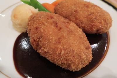 ●メンチカツレツ 揚げ上がりも香ばしく衣はサックリ。口に運ぶと肉の旨味をストレートに感じ旨いです。凝縮されてような味わいでそれだけでも十分ですが、デミグラスソースとの相性も抜群に良かったです。