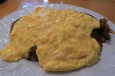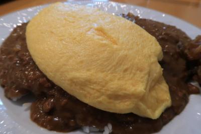 ●ドライカレーオムレツのせ まずはドライカレーのみ。ドライと言っても所謂ジャパニーズカレーより少し濃度を詰めた感じ。挽肉たっぷりで味にコクがあり、甘み、塩味、旨味の層が厚く非常に美味しい。後口にほんのりスパイス感もあり、深い味わいのカレーです。綺麗なフォルムのオムレツをナイフで切り広げると、タンポポオムライス風。合わせるとまろやかさと一層コクが増し絶妙。付け合わせの福神漬けを間に挟み、一気に完食。ふ~、満足。