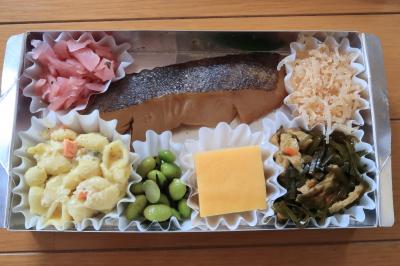 ●銀カレイ照り焼き弁当 照り焼きといっても醤油がふわっと香る程度で非常に上品な味わい。カレイの身はやわらかく脂の乗りも十分。口に運ぶと身はホロリと崩れ美味しい。薄味でも全く物足りなさを感じないのが素晴らしいです。おかずは共通で、白滝鱈子和え、昆布揚げ煮物、卵焼き、枝豆ひじき、マカロニサラダカレー風味、桜漬け。どれも味付けも良く、変化があるので飽きずに頂けます。その中では玉子焼きが、通常のものとは違い固めのプリンのような食感でした。