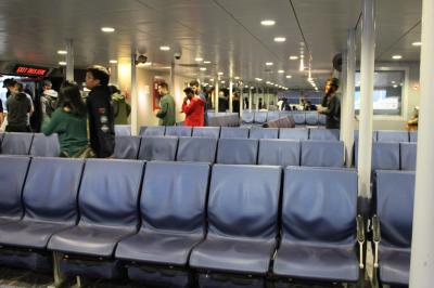 天気の良い日曜日だったので、船内は混雑していて人の頭の間から、松島湾の景色を眺めました。
