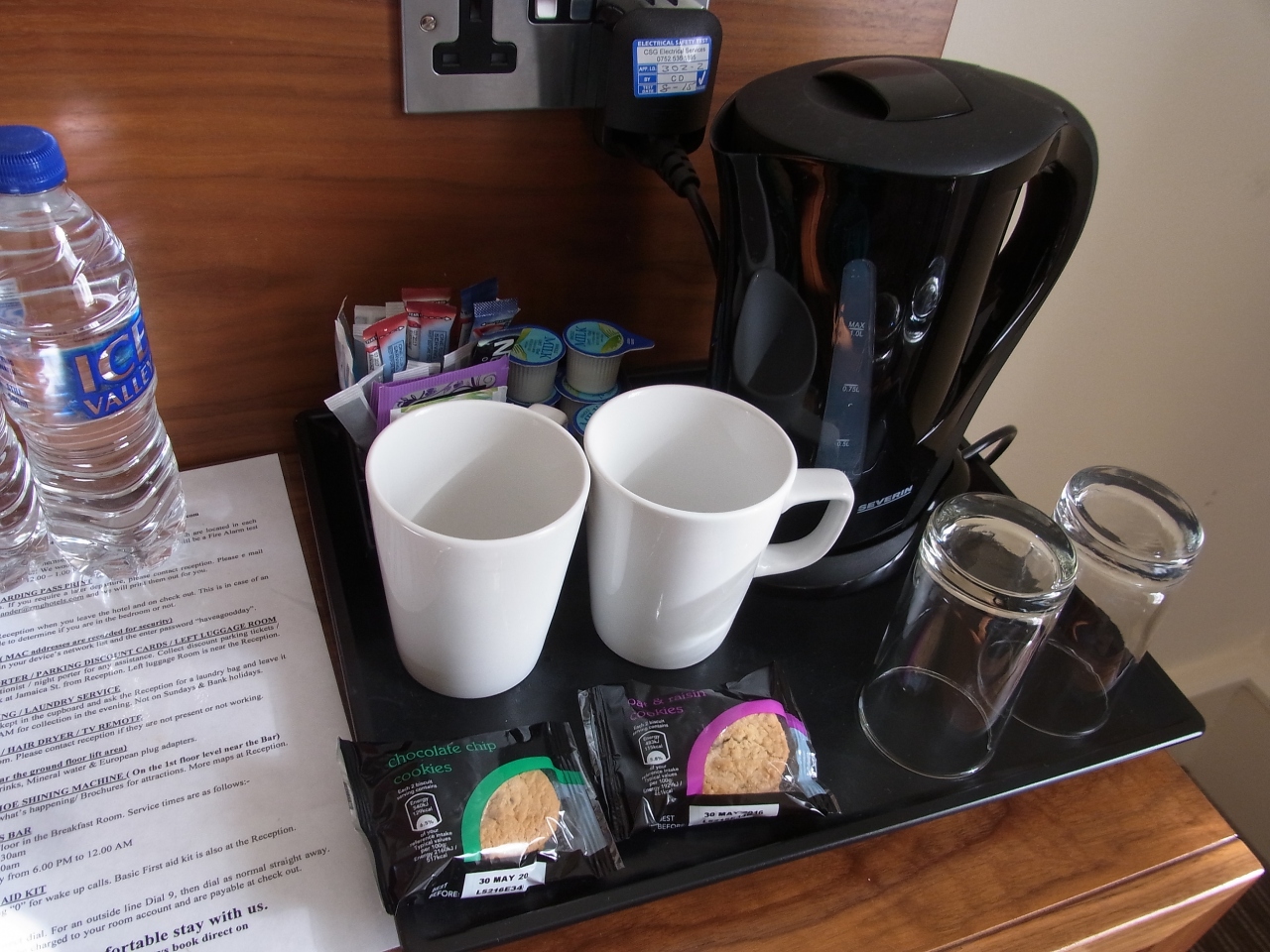 お茶セットが、ミネラルウォーター・お菓子とともにあり、コーヒーや紅茶も十分に備えておいてくれてました。