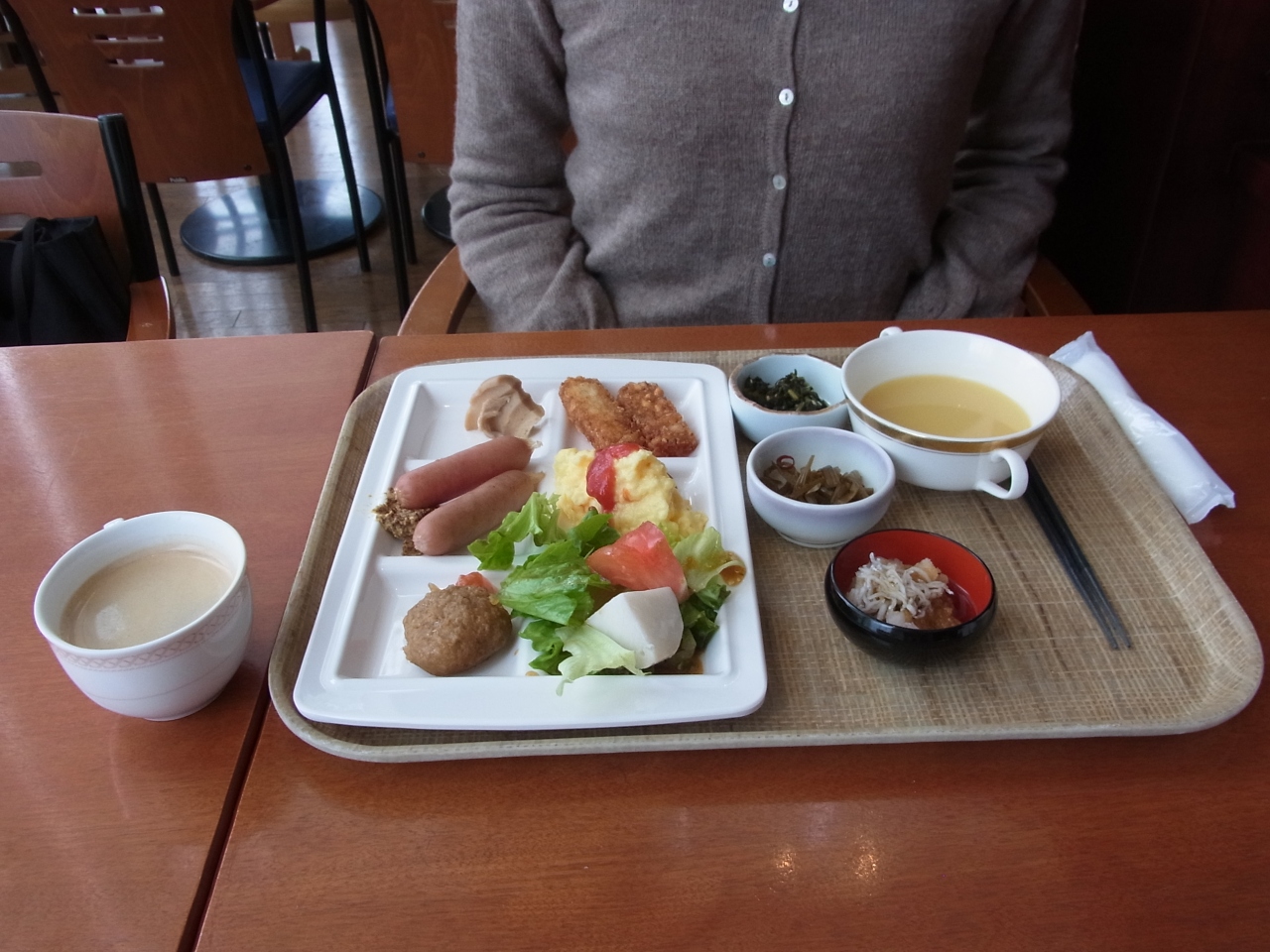 朝食が付きますが、パン・ごはん選べますし、午後、お店などで好きなものを食べることを考えればこのくらいの量で充分だと思います。
