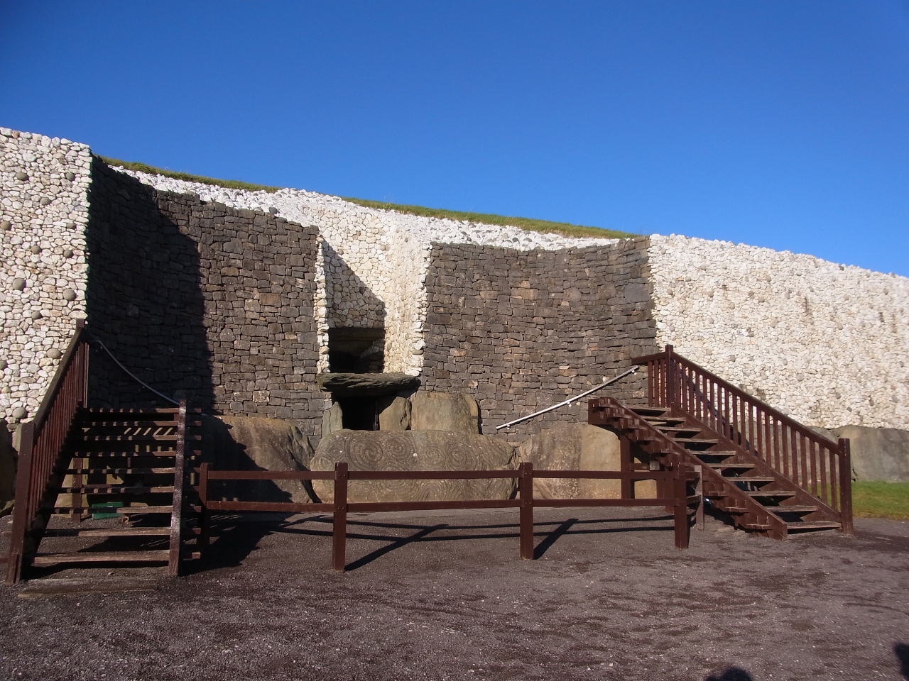 丸い外観は、復元によるものですが、その周りの渦巻き模様などはまさに5000年前当時の人類のアート。