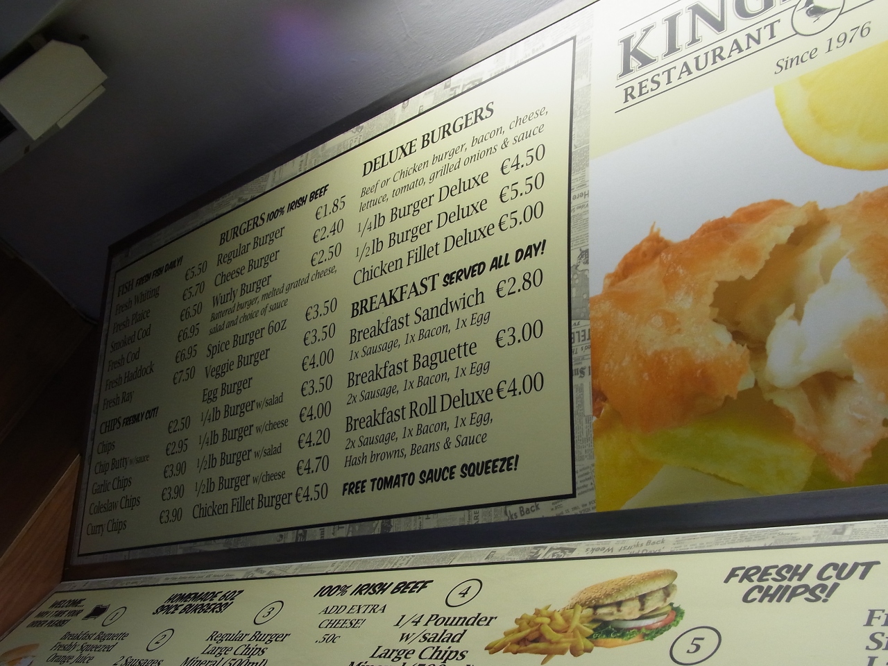 中に入ると、とても賑わっていて、注文をするまで少々並びますが、FIS&CHIPSのFISHも色んな種類があるので(タラとかカレイとかスズキ系とか・・・)、悩んでいる間に順番がきます。