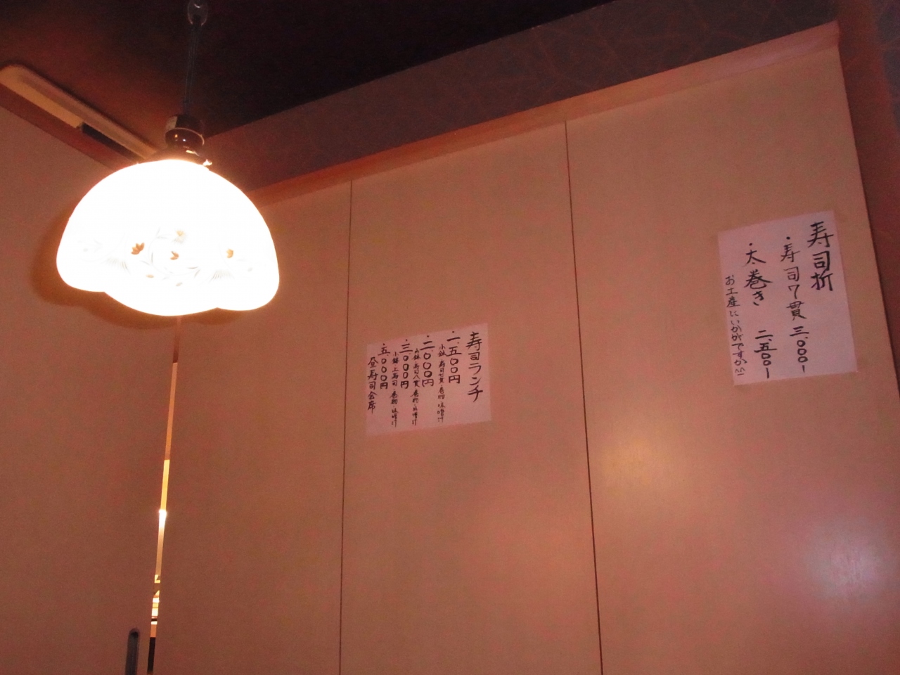 お店に入ると、ランチの張り紙もあり、お寿司セットが1,500円からとのこと。あの立地で、本当においしい、凝った料理なのに、1500円からランチが食べられるのはびっくりでした。