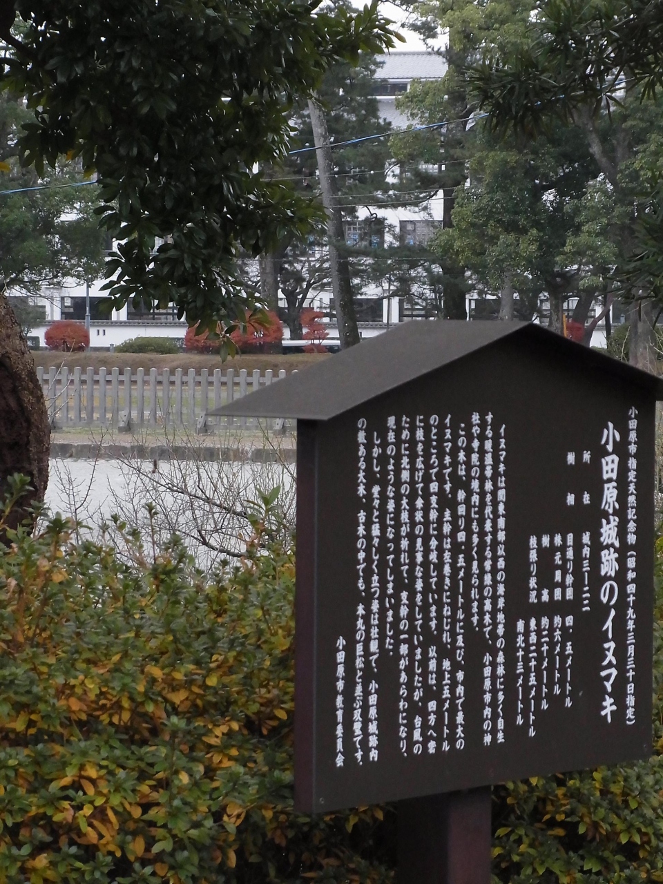 古くねじれた樹体ですが、とても力強く、生命力を感じます。樹齢は400年だそうで、歴史ある小田原の町のパワースポットの一つ。天然記念物になっているとのことですが、これからも大事に長生きしてほしいものです。小田原城に訪れた際は是非会いに行ってください。