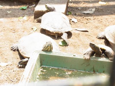 そこらでお花は咲いているし、心の字池や鶴の噴水池では、亀たちが遊んでいます。