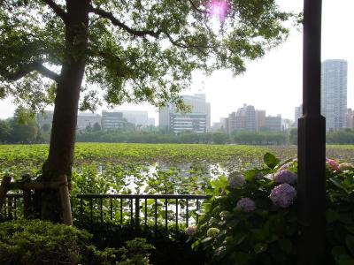 大きな池にたくさんの蓮があり、良い風情です。7月くらいには、ピンク色の蓮の花が見られるそうですよ。