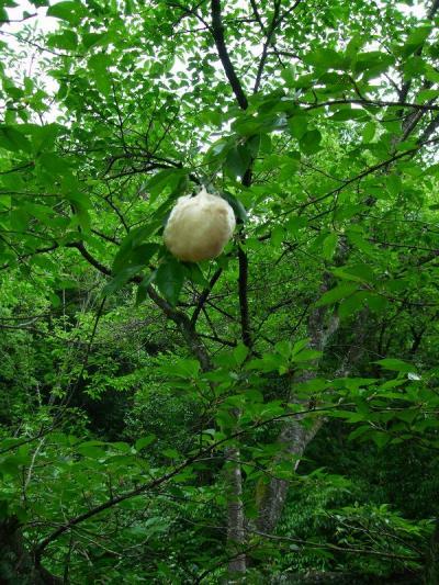 小瀬川温泉(丸忠)の給水所の上には3個のモリアオガエルの卵が身近で見る事が出来ます。