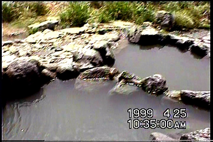 秘湯へびん湯は、沢にあり大雨の度に流されます。